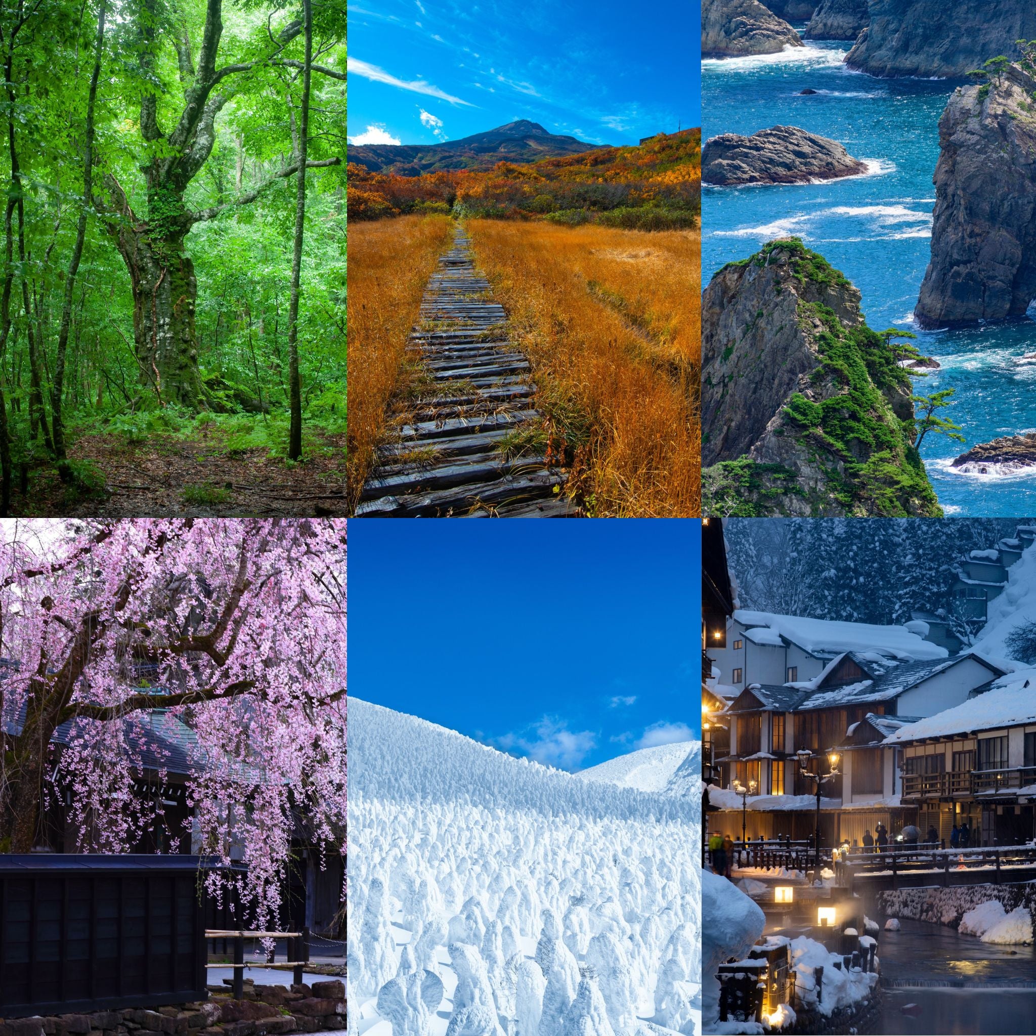 東北地方(陸奥)を象徴する森、山、海、花、雪、夜、6つの情景を色ガラスで表現したシリーズ。
