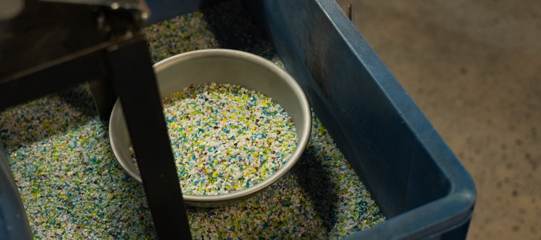 シモとは、色ガラスを小さく砕いたもの。